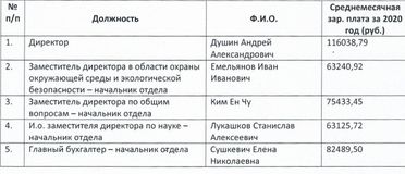 | 3. | Заместитель директора по общим вопросам – начальник отдела | Ким Ен Чу | 53 589,13 |
